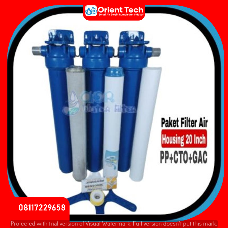 Paket Filter Air PDAM Housing 20 Inch - PP+GAC+CTO adalah investasi cerdas untuk mendapatkan kualitas air bersih optimal [http://kebutuhanair.com/] di rumah Anda. Dengan tiga tahap penyaringan yang terbukti efektif, mulai dari sedimen hingga penghilangan klorin dan perbaikan rasa, paket ini memastikan air yang Anda gunakan sehari-hari bebas dari kekeruhan, bau, dan rasa tidak sedap. Segera tingkatkan kualitas hidup Anda dengan air yang lebih murni.
