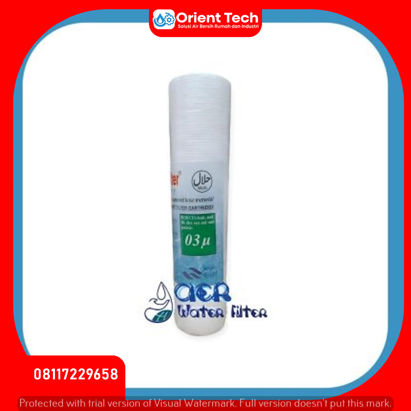 Cartridge Filter Air - Sediment - Spun 10 Inch 03 Micron adalah pilihan yang tepat dan ekonomis untuk meningkatkan kejernihan air di rumah atau kantor Anda. Dengan kemampuan filtrasi 03 mikron, filter ini menjamin perlindungan maksimal bagi sistem air Anda dari sedimen halus, menghasilkan air yang lebih bersih, jernih, dan memperpanjang umur peralatan Anda. Pilih produk ini untuk langkah awal menuju air bersih yang ideal.