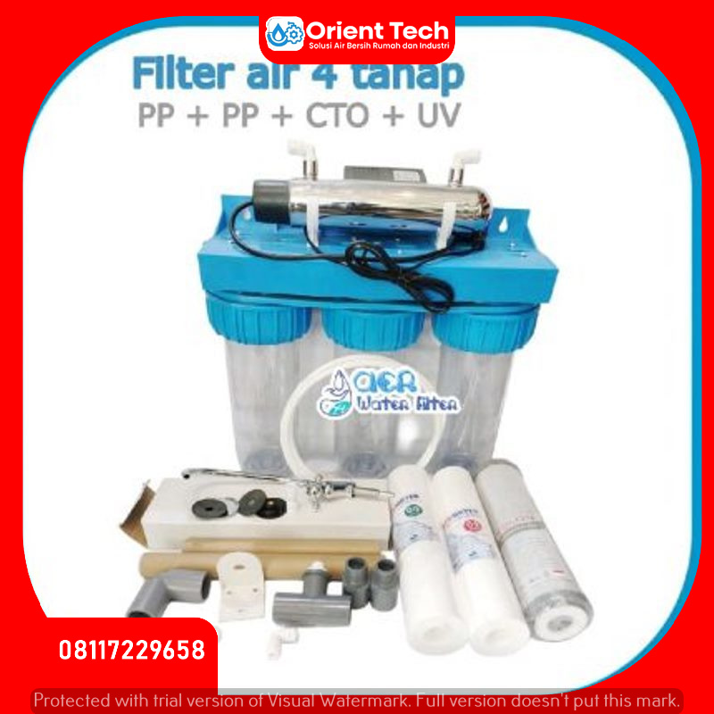 Produk Filter Air Bersih dan Minum 4 Tahap Filtrasi adalah solusi komprehensif untuk kebutuhan air rumah tangga. Dengan kombinasi teknologi filtrasi sedimen, karbon aktif, dan sterilisasi sinar UV, alat ini mampu mengubah air baku menjadi air yang jernih, tidak berbau, dan bebas bakteri. Penggunaannya tidak hanya menjamin kesehatan keluarga tetapi juga memberikan efisiensi biaya jangka panjang dibandingkan membeli air kemasan. Pastikan Anda memilih produk filtrasi yang tepat untuk kualitas hidup yang lebih baik.