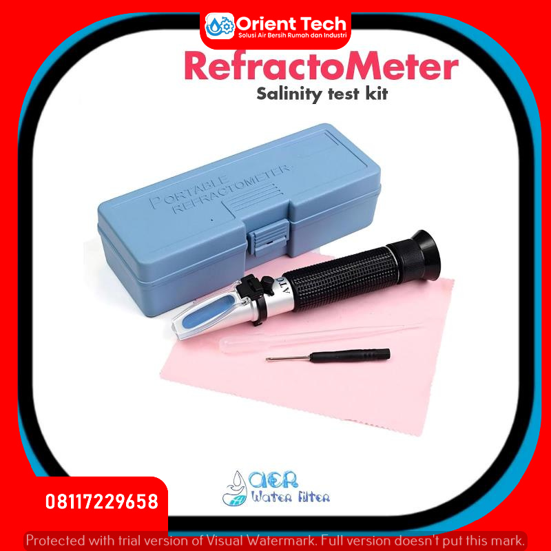 Alat Ukur Kadar Garam Refraktometer – RefractoMeter Salinity Meter adalah instrumen optik presisi yang dirancang khusus untuk mengukur konsentrasi garam (salinitas) dalam larutan air. Alat ini sangat penting untuk berbagai aplikasi, mulai dari pengelolaan akuarium, budidaya perikanan, hingga pengawasan kualitas makanan dan pengujian air laut. Dengan desain yang ringkas dan hasil yang cepat, RefractoMeter Salinity Meter menjadi pilihan utama para profesional.