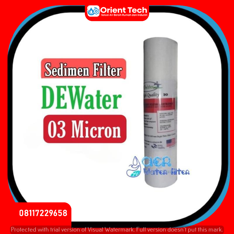 Jangan biarkan air kotor mengganggu kenyamanan keluarga Anda. Dapatkan air bersih maksimal dengan DEWater 03 Mikron.