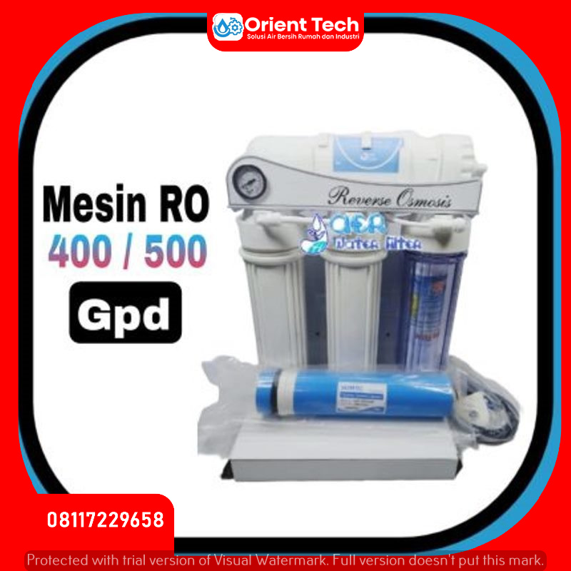 - Pemurnian Tingkat Tinggi : Teknologi Reverse Osmosis 100 Gpd memiliki pori-pori membran yang sangat kecil (0,0001 mikron), sehingga efektif menyaring virus dan bakteri.